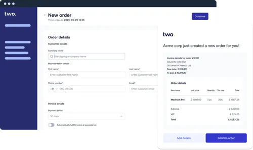 Using our world-class credit and fraud engine, we run instant checks that give your customer net-terms in seconds using just their company name.